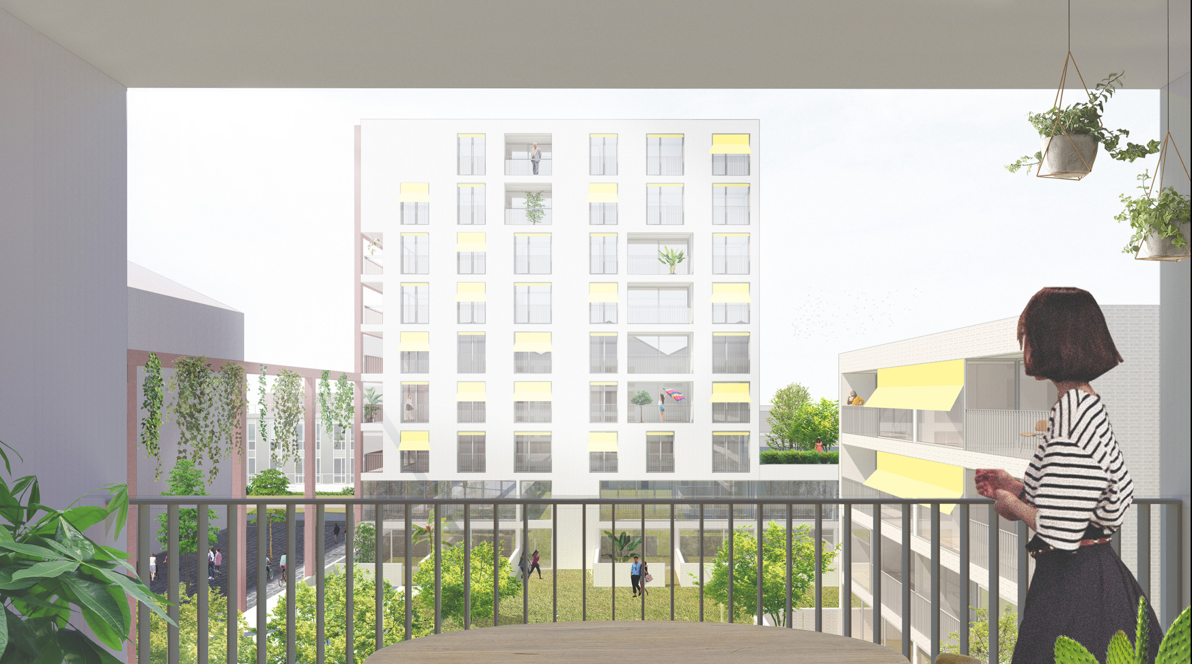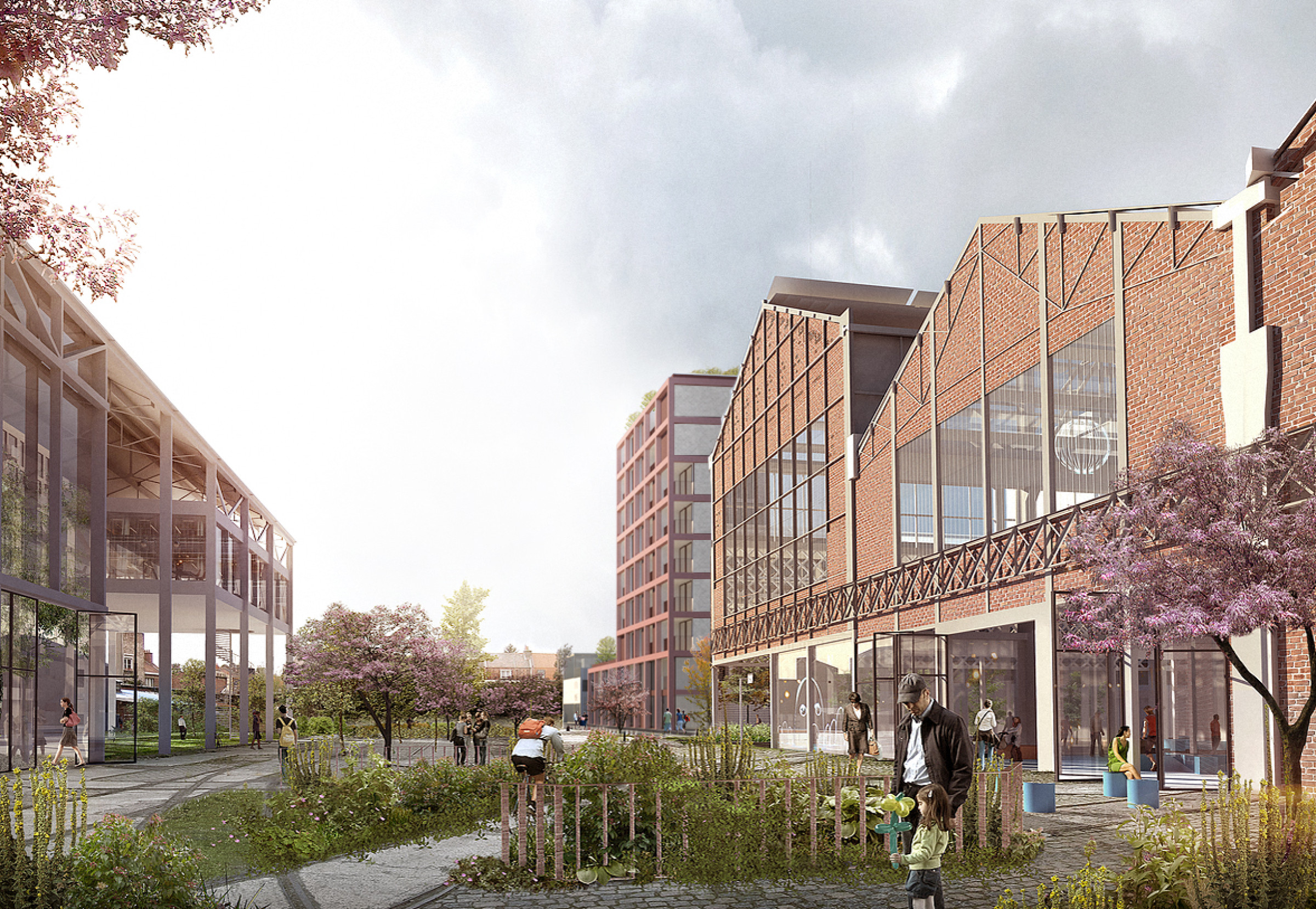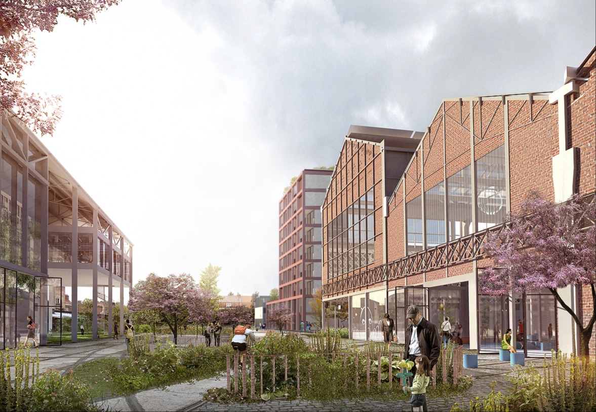 Ontwikkeling van lot 3B en 3C binnen het masterplan van Fives Cail Babcock in Lille, met 77 wooneenheden, parking en een stadsboerderij.