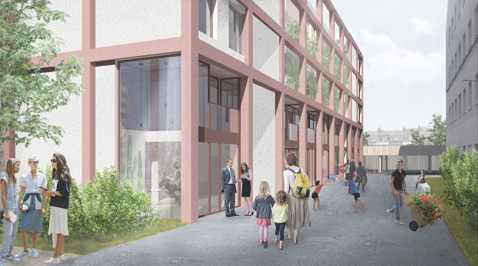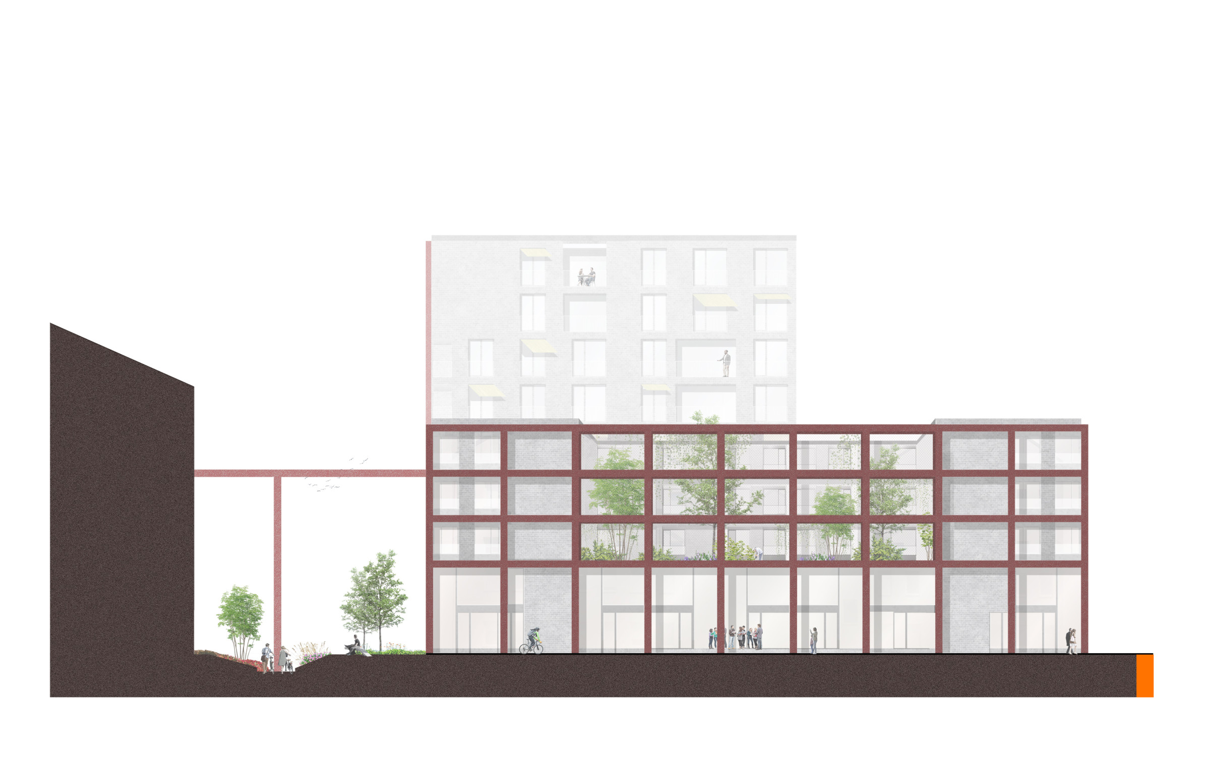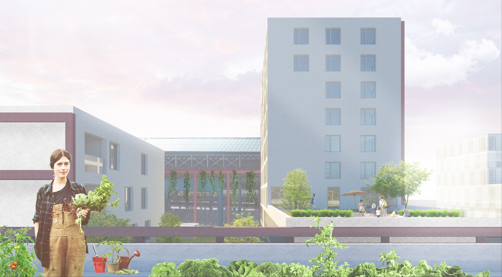 Ontwikkeling van lot 3B en 3C binnen het masterplan van Fives Cail Babcock in Lille, met 77 wooneenheden, parking en een stadsboerderij.