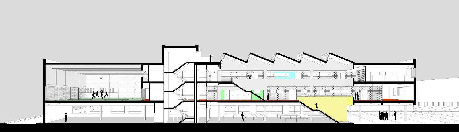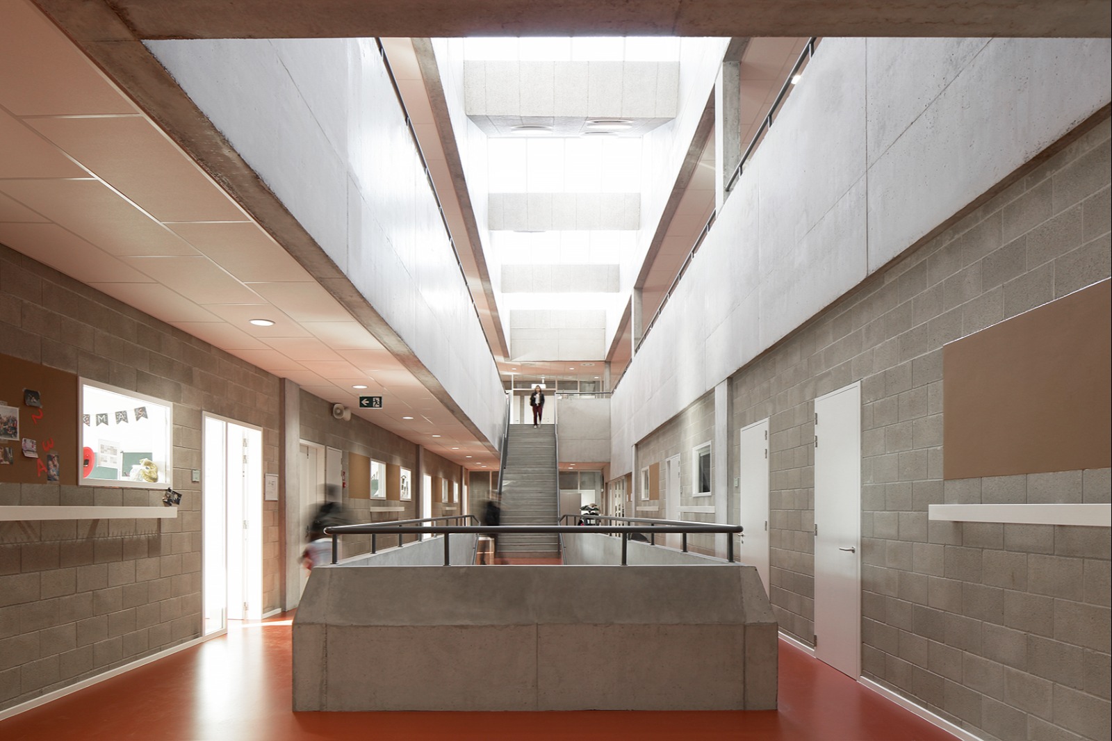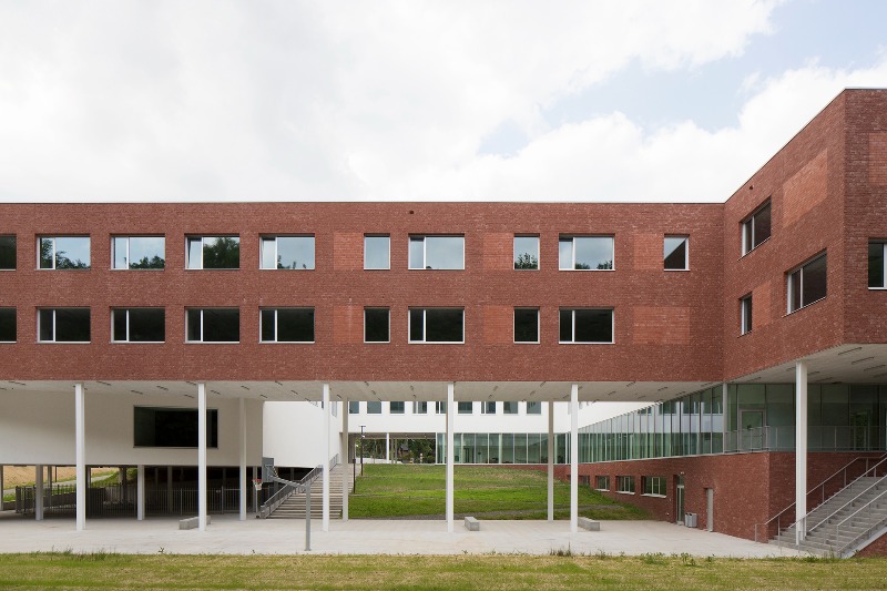 De nieuwbouw is transparant opgezet en stimuleert leerlingen om zelf keuzes te maken in hun dagelijkse gebruik van het gebouw. Specifiek vormgegeven ruimtes zoals gangen, trappen, klaslokalen, zalen en het dak vormen samen een inspirerend geheel dat creatieve inbreng en experiment aanmoedigt. De uitwaaierende trap naar de speelplaats fungeert tevens als kleine tribune, terwijl het dak niet alleen een gevoel van vrijheid biedt maar ook ruimte creëert voor buitenklassen.