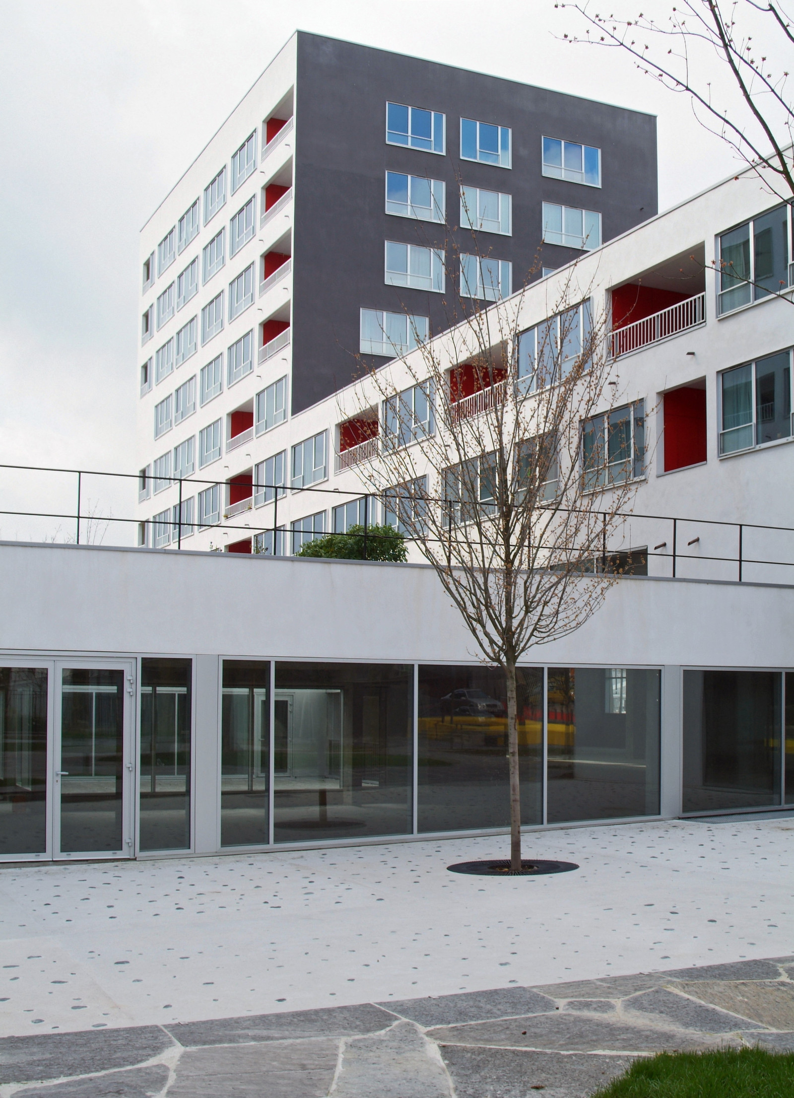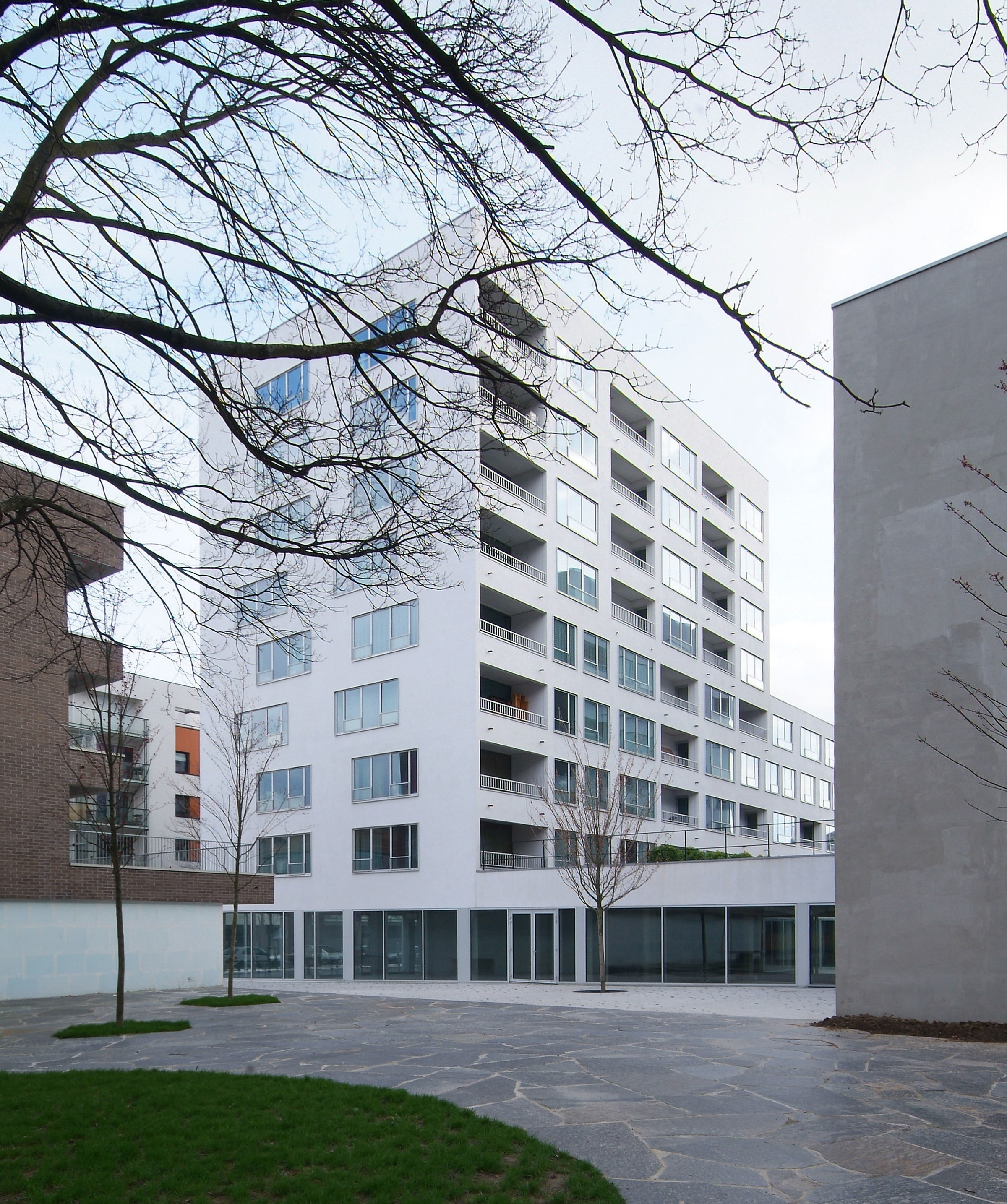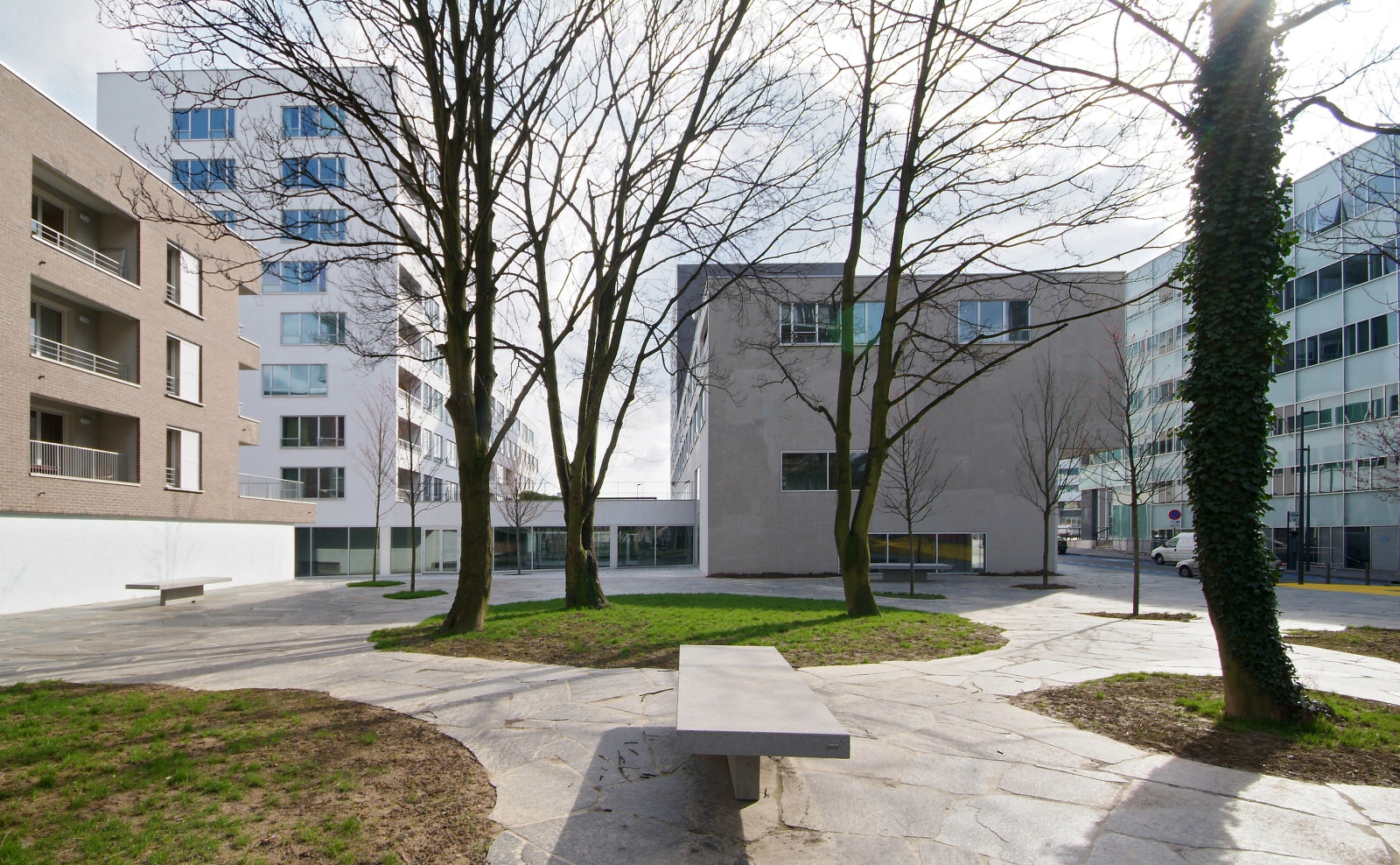 Twee woongebouwen flankeren een binnentuin en bevinden zich aan de rand van de nieuwe wijk Saint-Maurice. Het strokenplan van de wijk bewaart de aanwezige bomen en topografie als restanten van een groenstrook langs de voormalige stadswallen. De architectuur integreert zich niet op een cosmetische wijze maar door rekening te houden met de verschillende behoeften en kenmerken van de plek. De programmatorische stapeling, verscheidenheid aan functies en ruimtes en hun interne verbindingen zorgen voor architectonische en stedenbouwkundige meerwaarde. De intense verwevenheid van de overdekte passage, commerciële ruimtes, inkomhallen, tuin en parking levert interessante confrontaties en spannende ruimtes op.