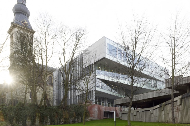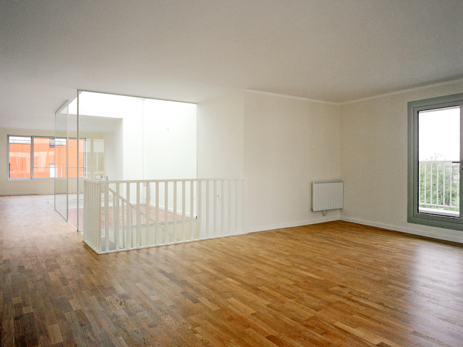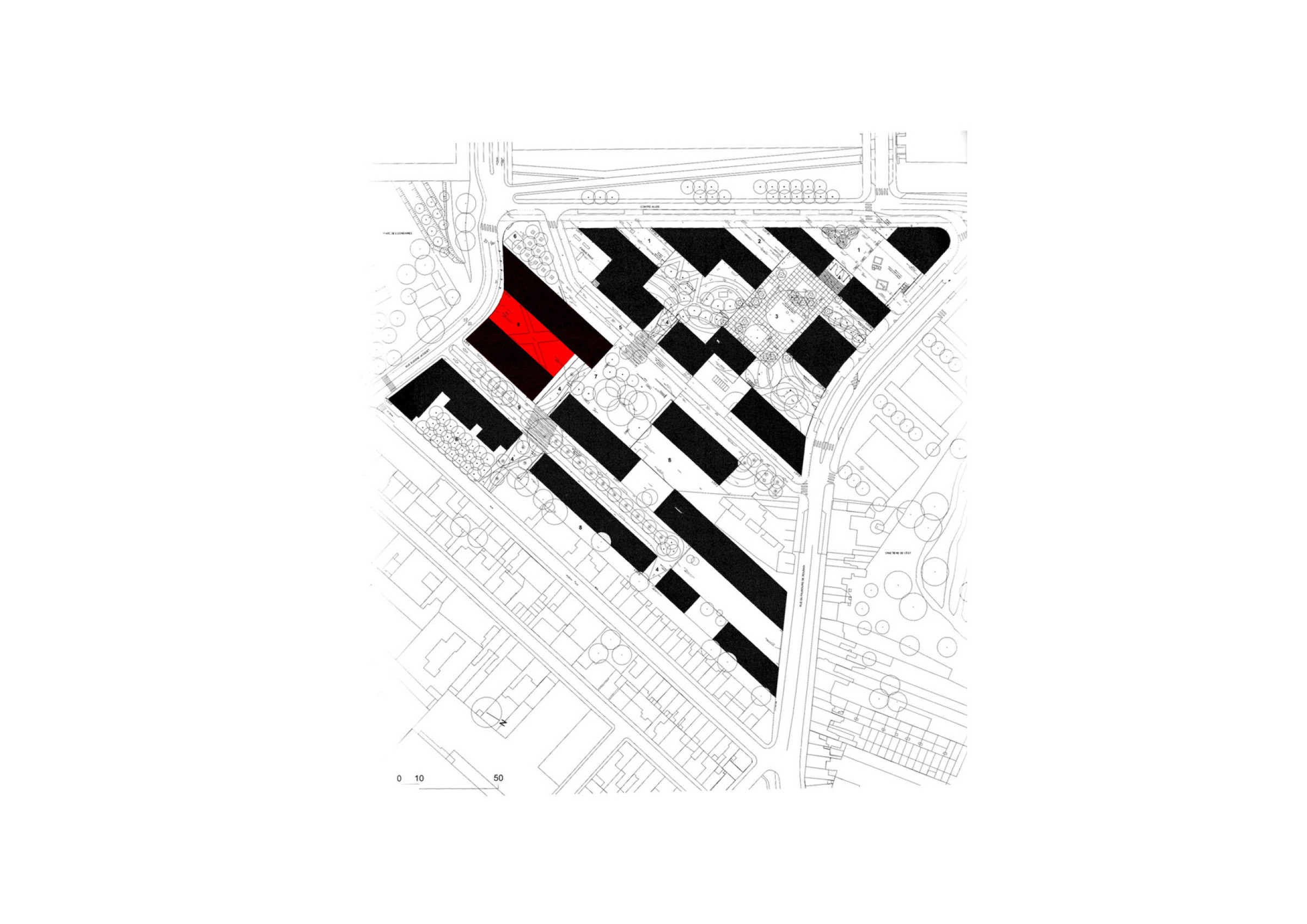 Twee woongebouwen flankeren een binnentuin en bevinden zich aan de rand van de nieuwe wijk Saint-Maurice. Het strokenplan van de wijk bewaart de aanwezige bomen en topografie als restanten van een groenstrook langs de voormalige stadswallen. De architectuur integreert zich niet op een cosmetische wijze maar door rekening te houden met de verschillende behoeften en kenmerken van de plek. De programmatorische stapeling, verscheidenheid aan functies en ruimtes en hun interne verbindingen zorgen voor architectonische en stedenbouwkundige meerwaarde. De intense verwevenheid van de overdekte passage, commerciële ruimtes, inkomhallen, tuin en parking levert interessante confrontaties en spannende ruimtes op.