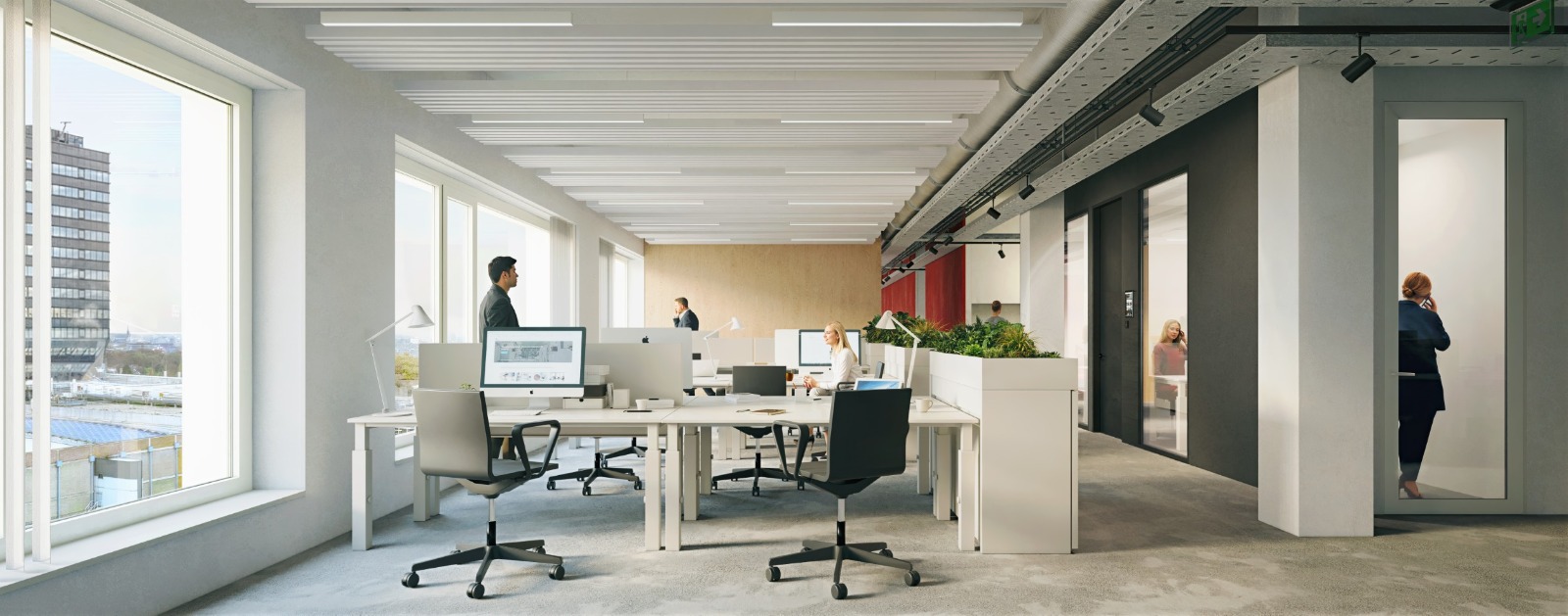 Centraal staat de cross collaborationzone: een informele, levendige ruimte die werknemers bewust losmaakt van hun individuele werkplek. Hier bevinden zich kitchenettes, social zones, aanlandplekken en vergaderruimtes. Via open trappen en skybridges ontstaat één doorlopend netwerk, een ruggengraat van interactie, waar spontane ontmoetingen innovatie voeden.