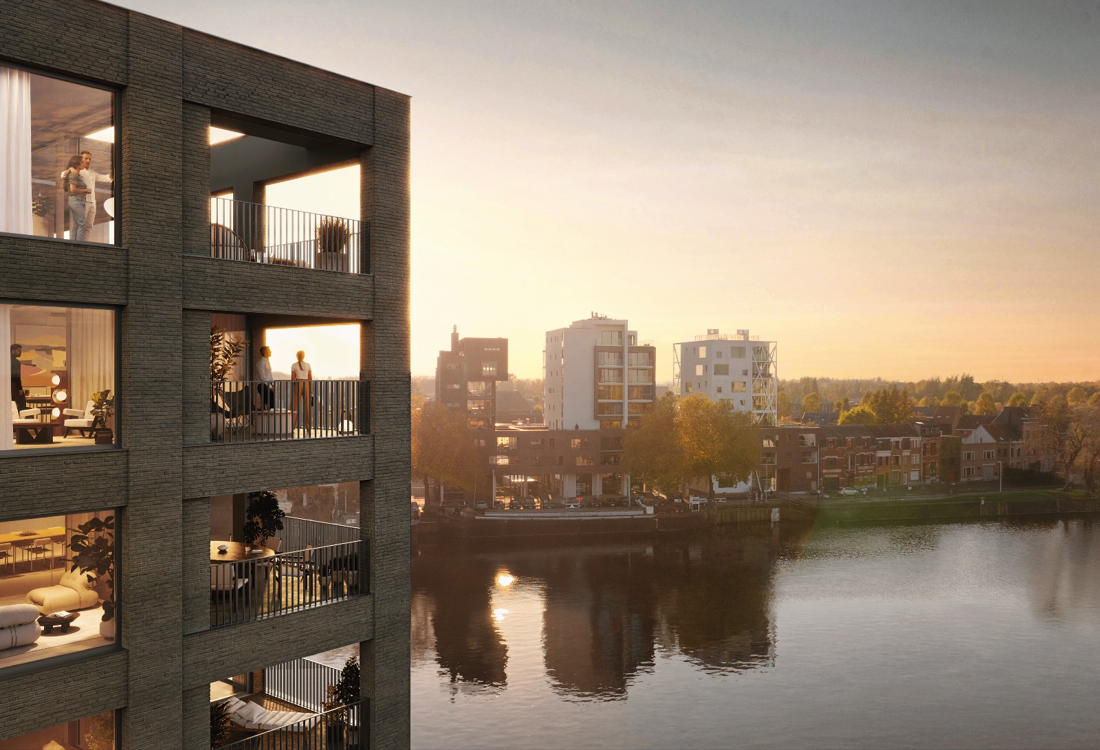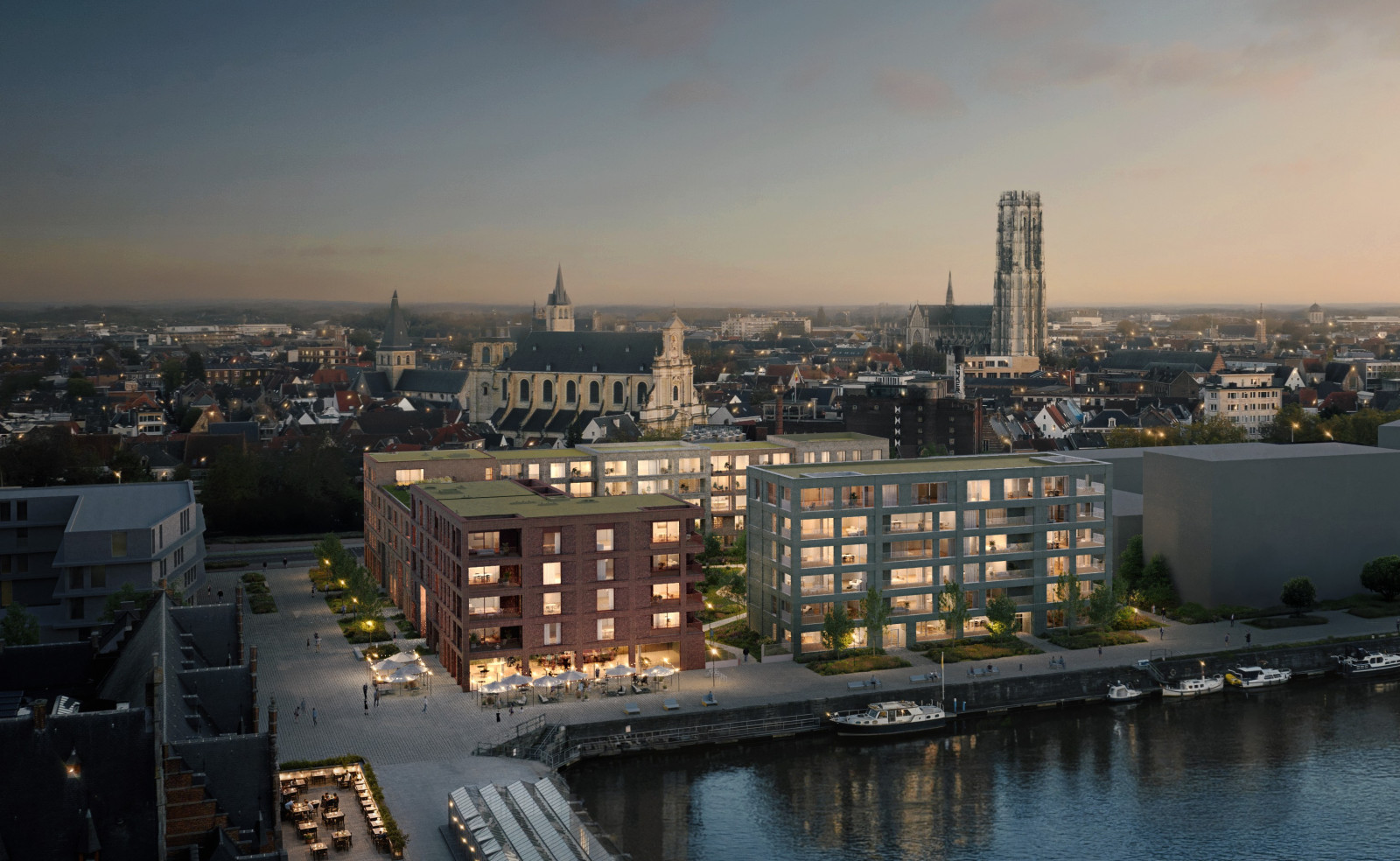 Een toren markeert de kruising tussen de Dijle en de vesten. Deze twaalf bouwlagen tellende woontoren markeert niet alleen deze bijzondere maar linkt het de nieuwe wijk ook aan andere markante plekken en gebouwen in de stad. Keerdokkaai wordt zo onderdeel van een netwerk op schaal van de stad.