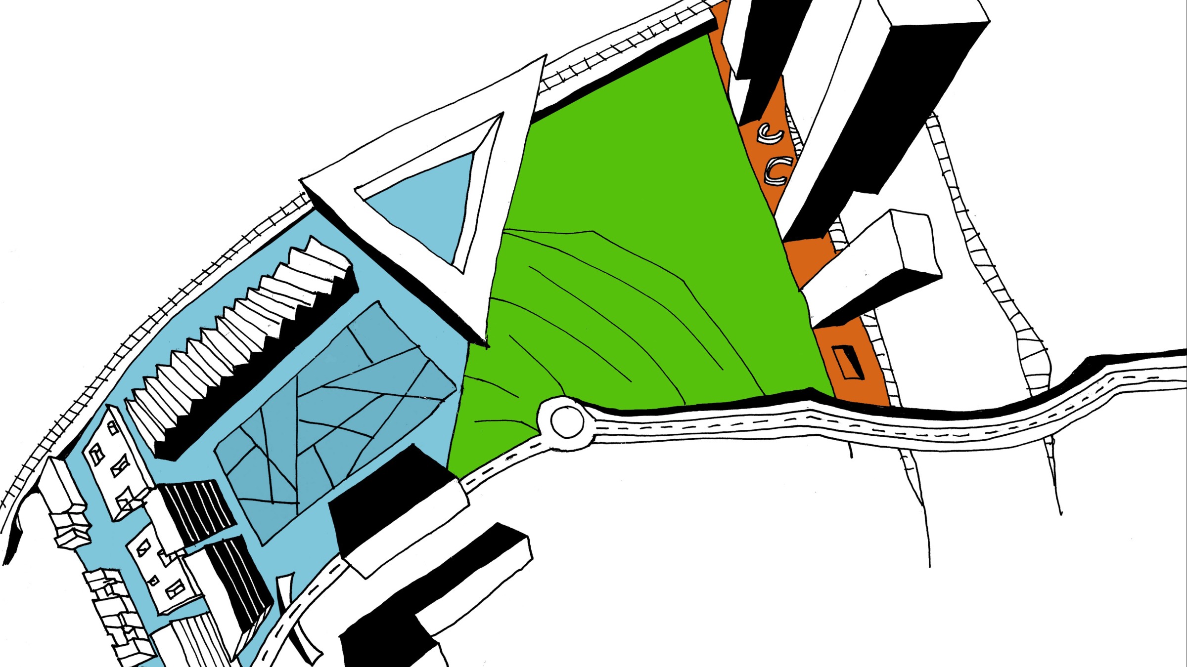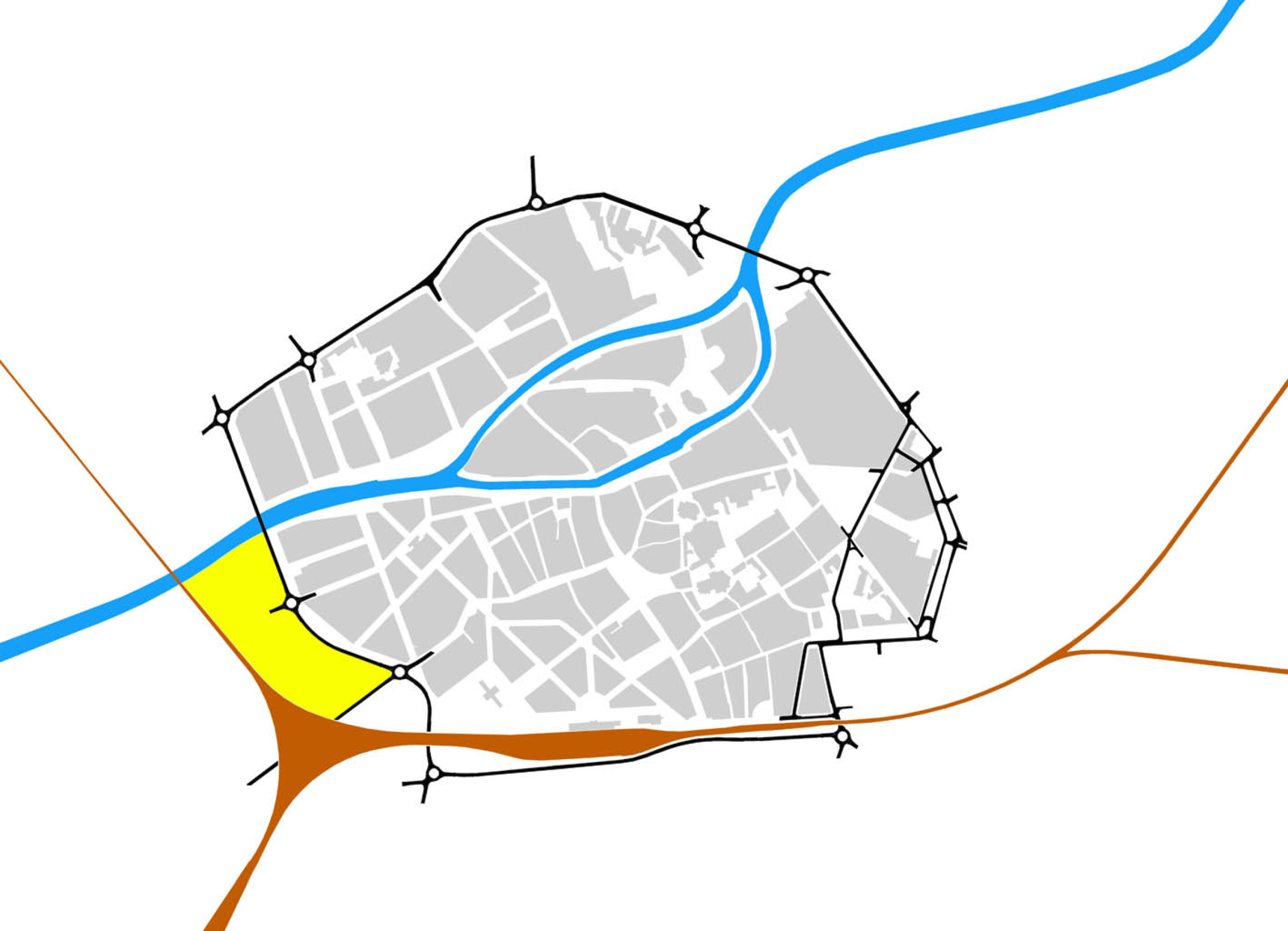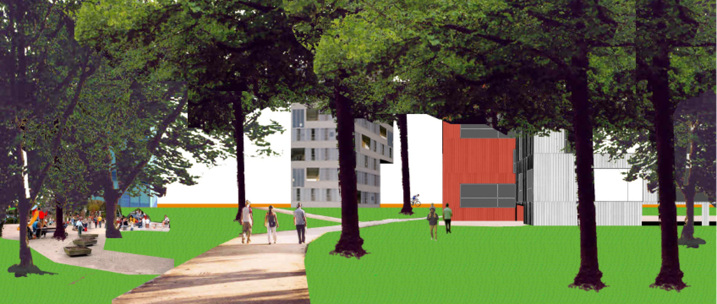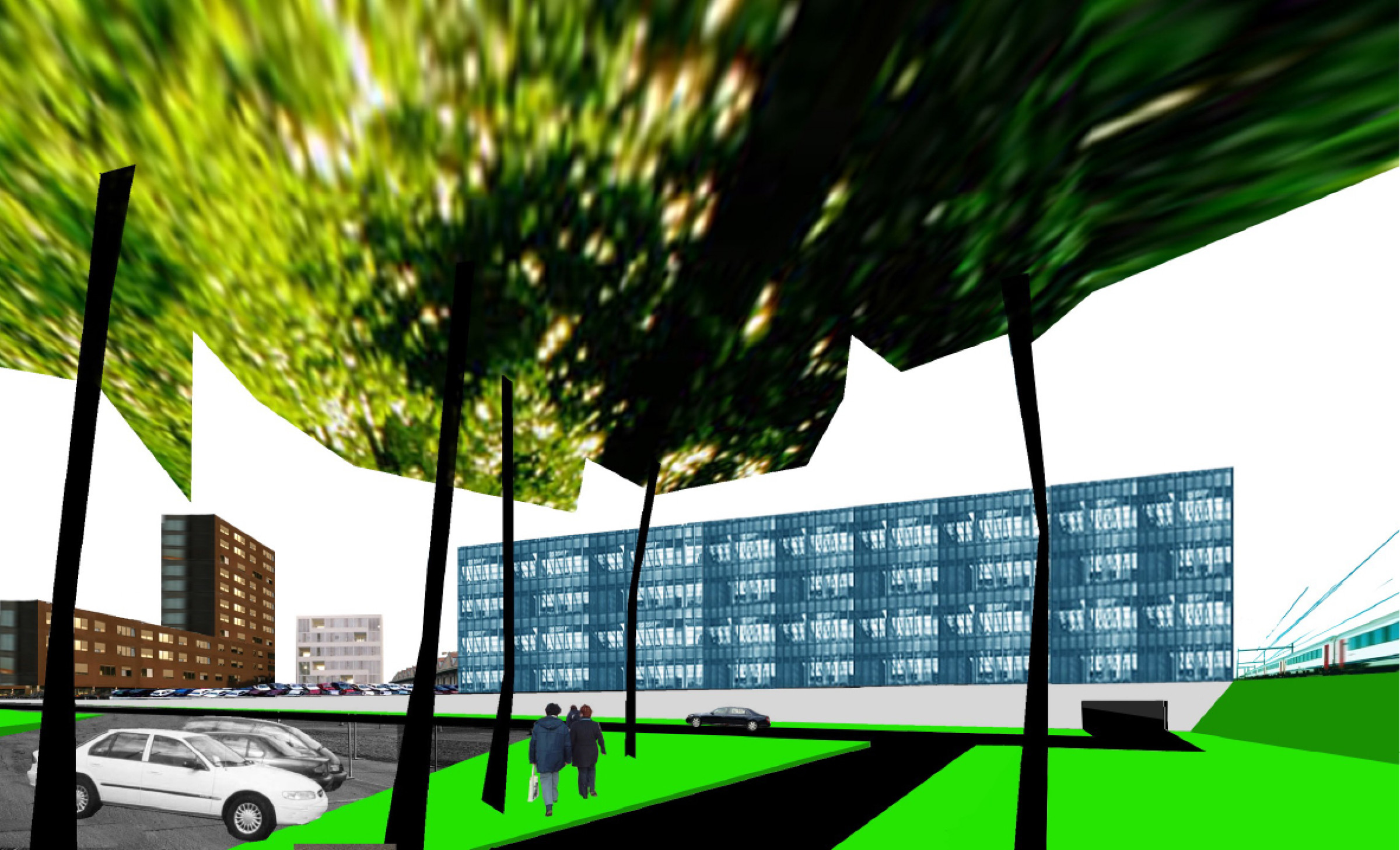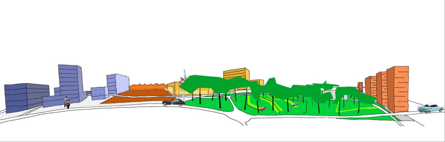 Het beperkte startprogramma wordt strategisch ingeplant om zo plekken te definiëren die een identiteit krijgen zonder dat ze een specifiek programma herbergen. Tegelijk genereert de plaatsing van de verschillende volumes, parkings en open plekken verschillende trajecten over de site en stimuleert het gebruik van de hele site vanaf de startsituatie. De infrastructuur die deze plekken verbindt garandeert potenties voor de ontwikkeling van de overgebleven locaties.