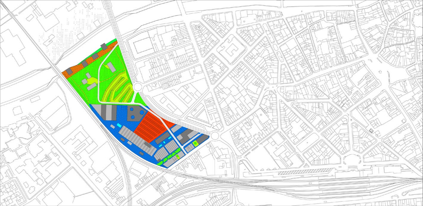Stedenbouwkundig ontwerp voor de oud-industriële site ‘Kortrijk Weide’.