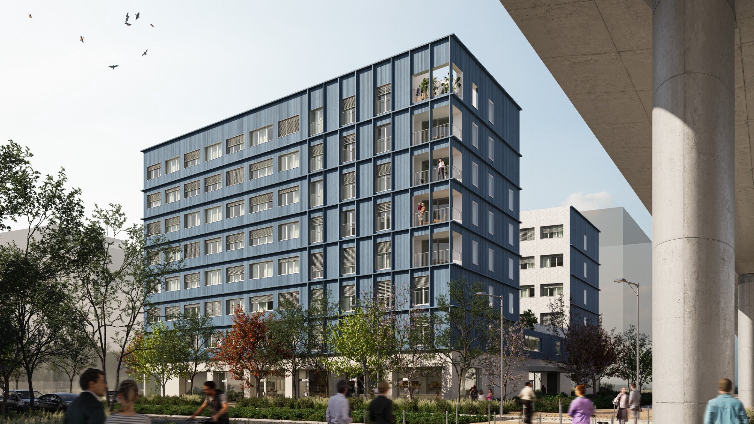 Een studentenresidentie met 188 woningen, een conciërgewoning, hotelresidentie met 36 kamers, commerciële ruimtes en een ondergrondse parkeergarage met 48 parkeerplaatsen als onderdeel van het stadsontwikkelingsproject Zac de Corbeville.
