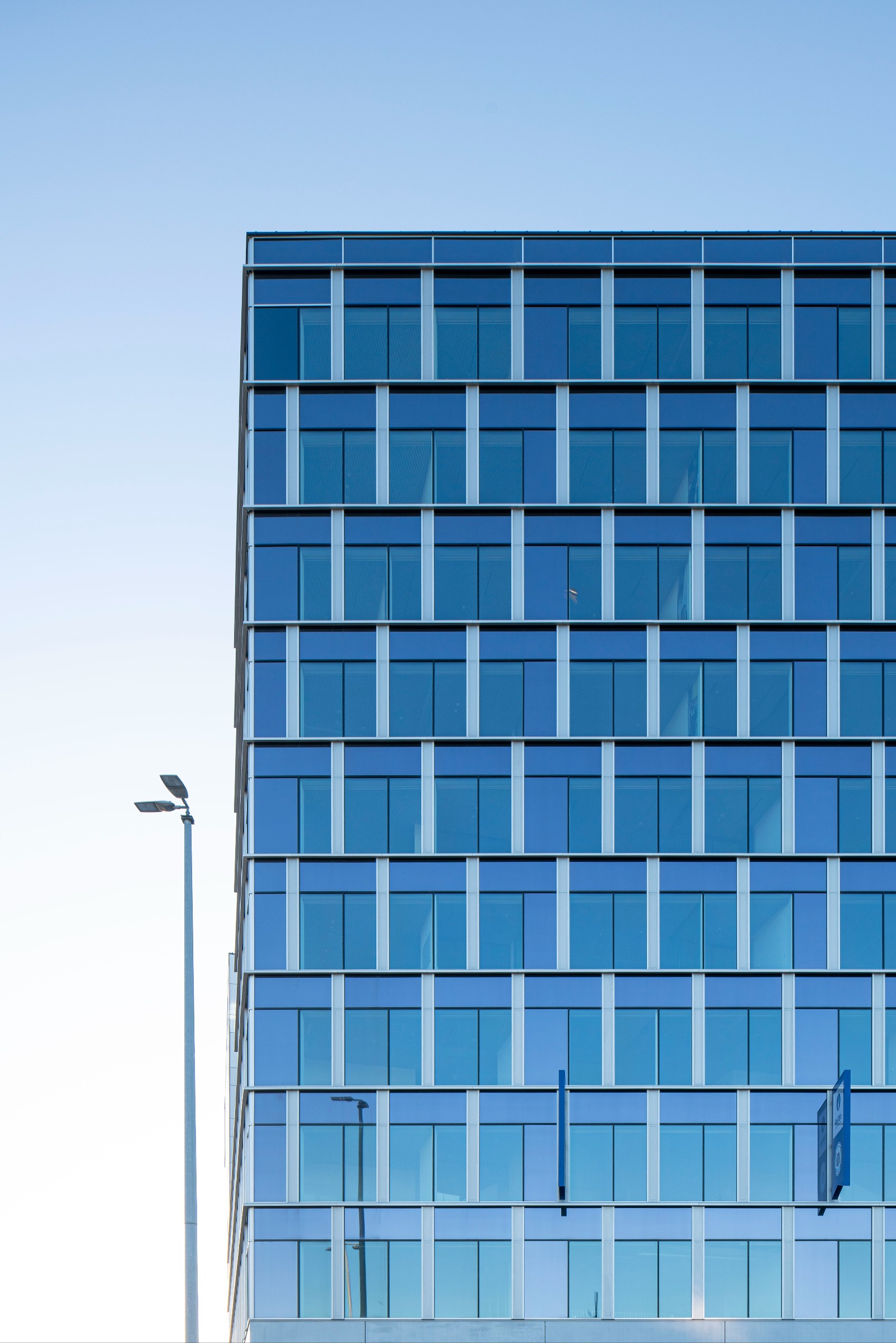 De kantoortoren is geen kopie van de naastliggende bedrijfsgebouwen, maar wel een eigen interpretatie van het thema binnen dezelfde familie.