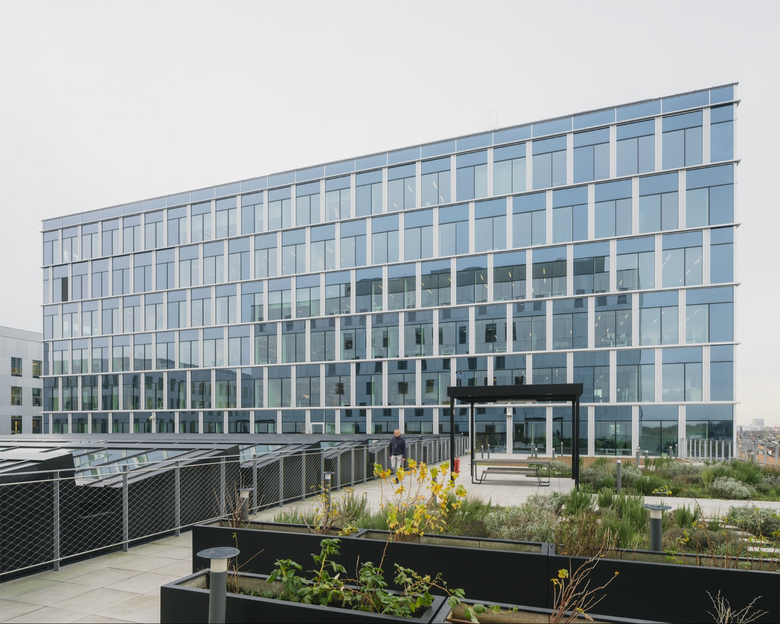 Om binnen het masterplan Post X een uitzonderlijk en op zichzelf staand gebouw toe te voegen, moest het enerzijds een unieke uitstraling hebben, maar anderzijds ook subtiel de aansluiting vinden met de andere gebouwen op de site. De verschillende duidelijk afleesbare gebouwdelen van het mastergebouw vinden een link in materialiteit met de bestaande kantoorgebouwen van de site.