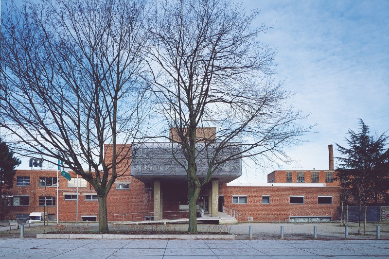 De semipermeabele gevelwand waardoor je de campus betreedt, maakt verbindingsroutes en en wandelpaden duidelijk en uitnodigend.