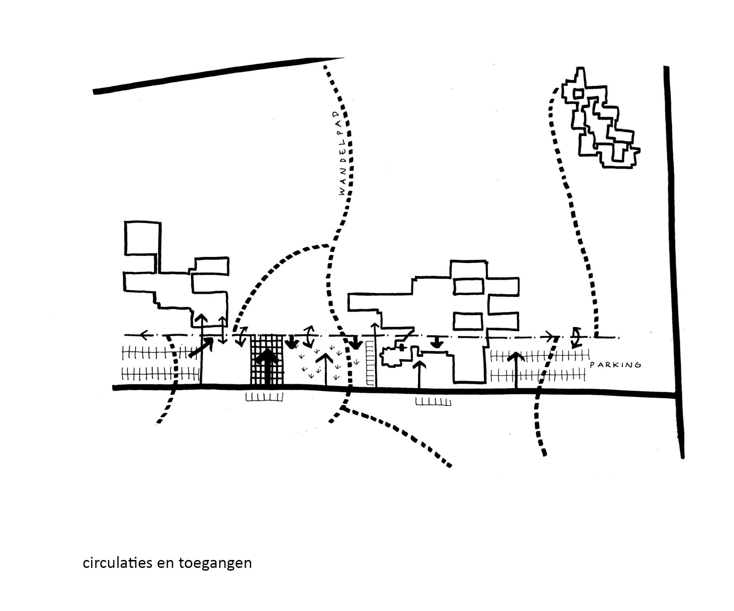 Het groene landschap evolueert van passief restgebied tot een actief onderdeel van de verschillende condities. Er ontstaat tevens een grotere contrastwerking tussen open en gesloten, binnen en buiten.