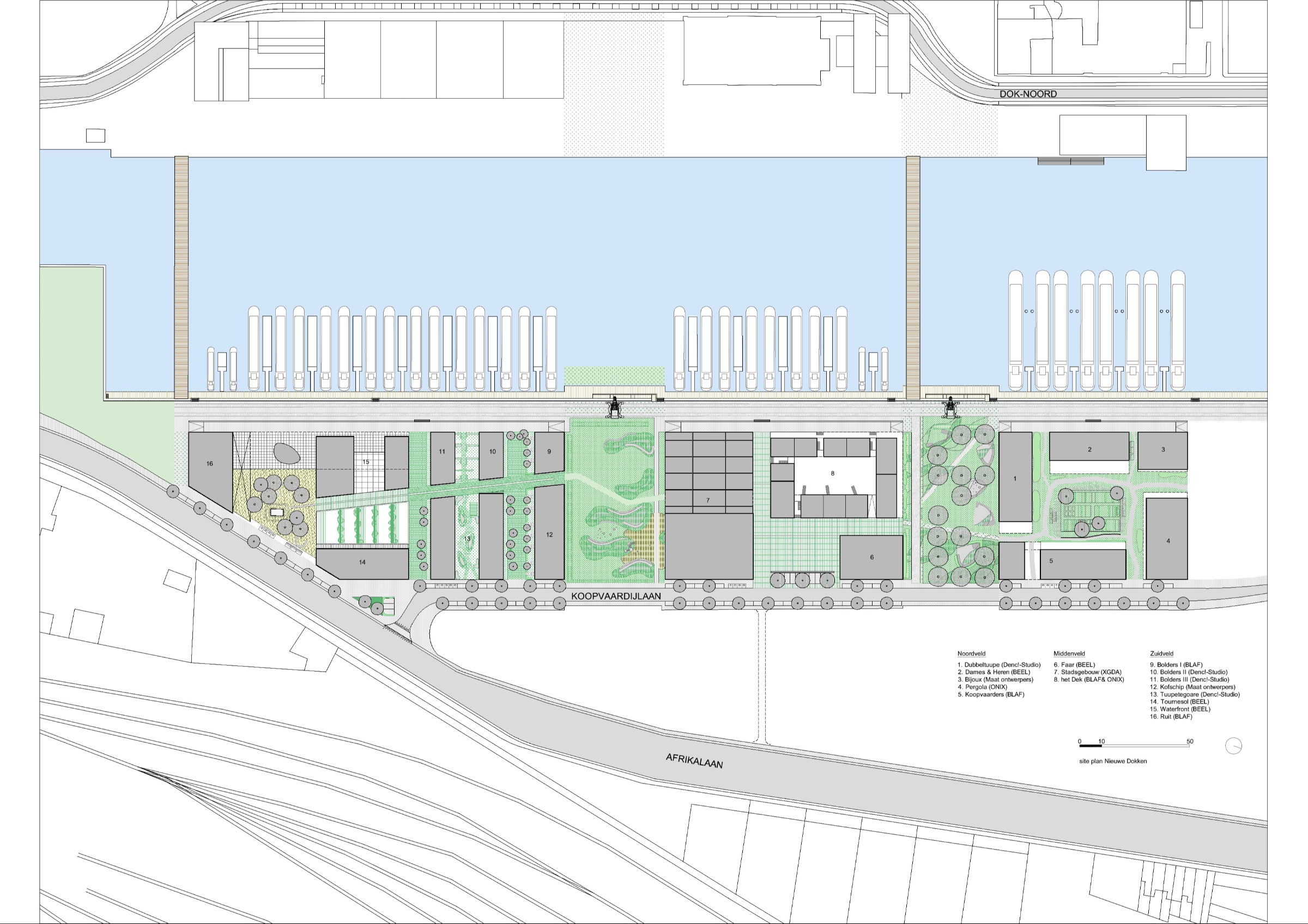 De Nieuwe Dokken transformeert een voormalig havengebied aan de Oude Dokken tot een dynamische, duurzame stadswijk waar wonen, werken en publieke ruimte in balans samenkomen. BEEL ARCHITECTEN en het volledige team werkte binnen het masterplan van OMA (Office for Metropolitan Architecture) aan het inrichtingsplan ‘Wonen aan de Schipperskaai’, het eerste woonproject in deze zone. Dit project zet voluit in op sociale diversiteit, met een coherente integratie van diverse woningtypes en publieke functies.