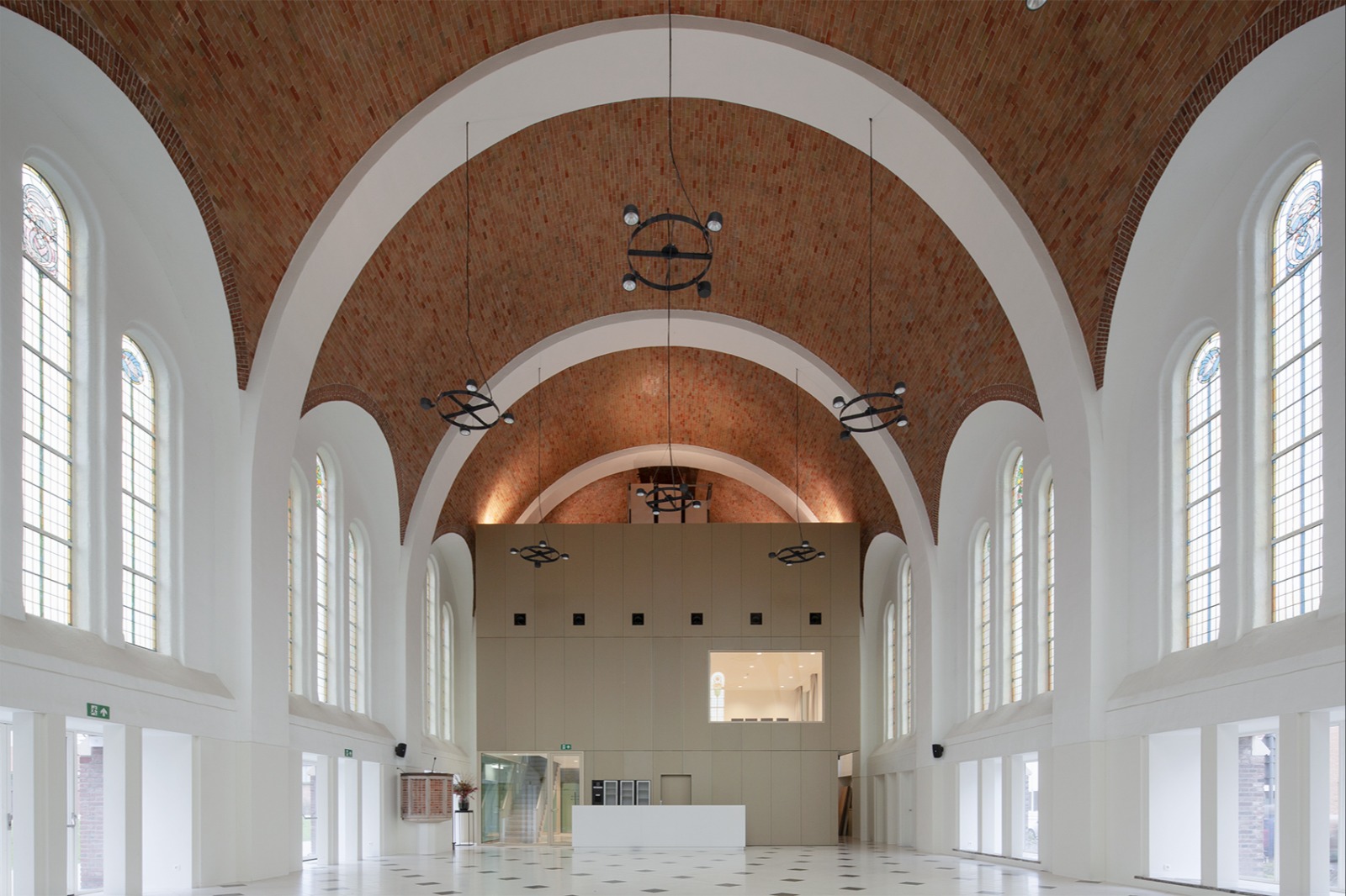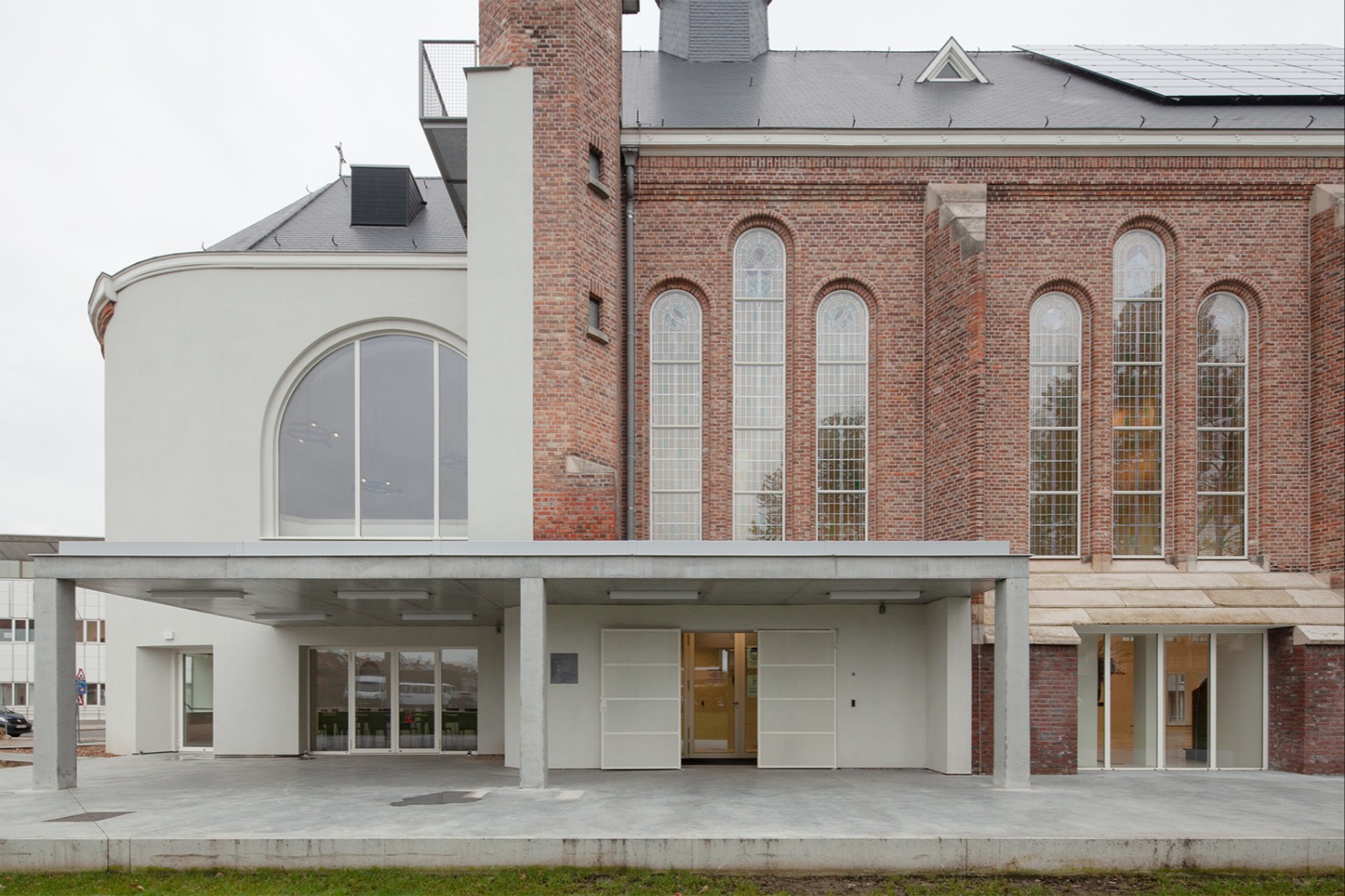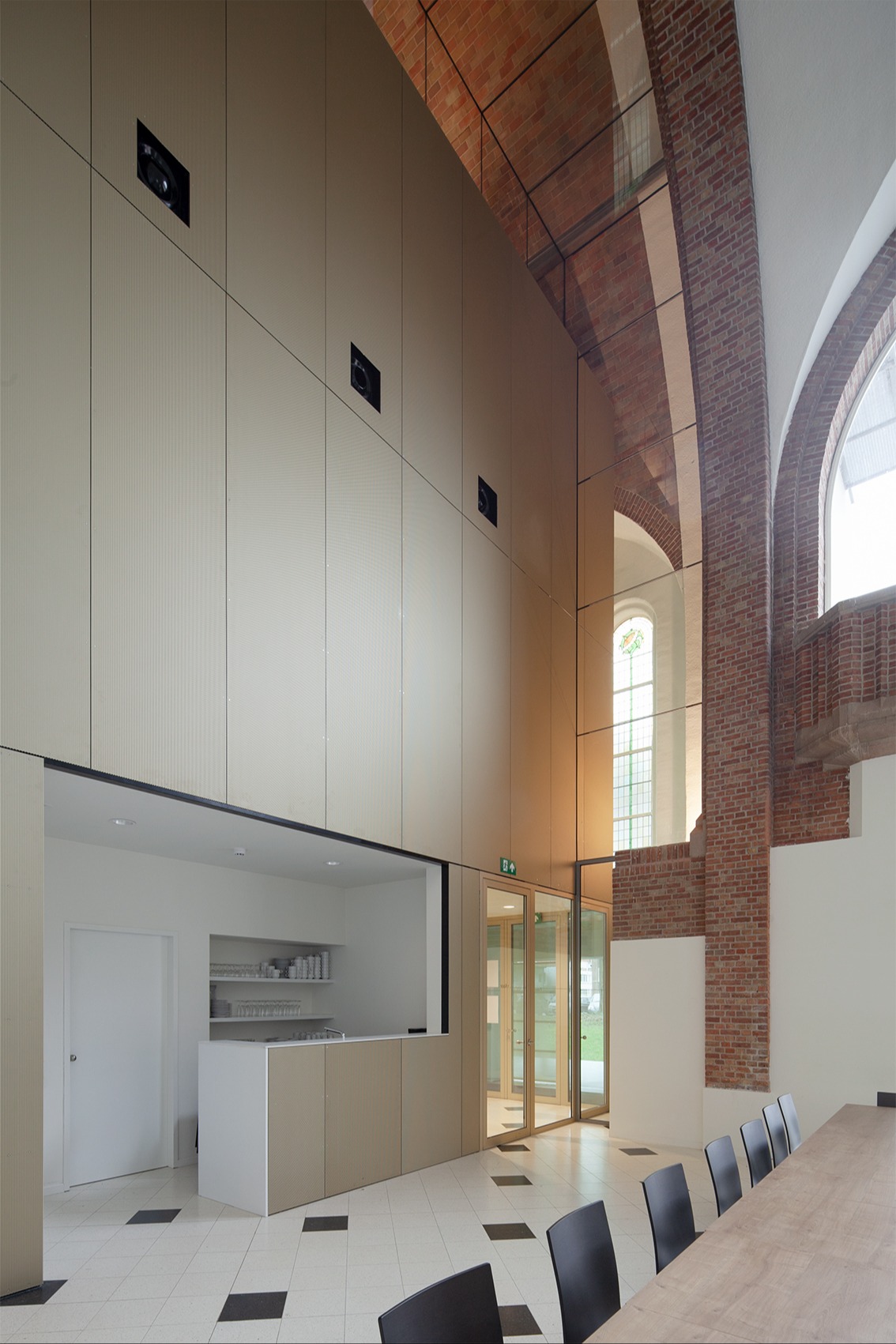 Het ontwerp voegt een nieuwe ‘box’ toe in de kerk. De box wordt in het bestaande volume van de kerk geschoven als scheiding tussen het koor en het schip. Op die manier worden in de ruimte van de kerk drie zalen gecreëerd: de grote polyvalente zaal in het schip van de kerk, de kleinere zaal in het koor van de kerk en de vergaderzaal in de nieuwe box. Hierin bevinden zich ook alle ondersteunende functies en technische ruimtes.
