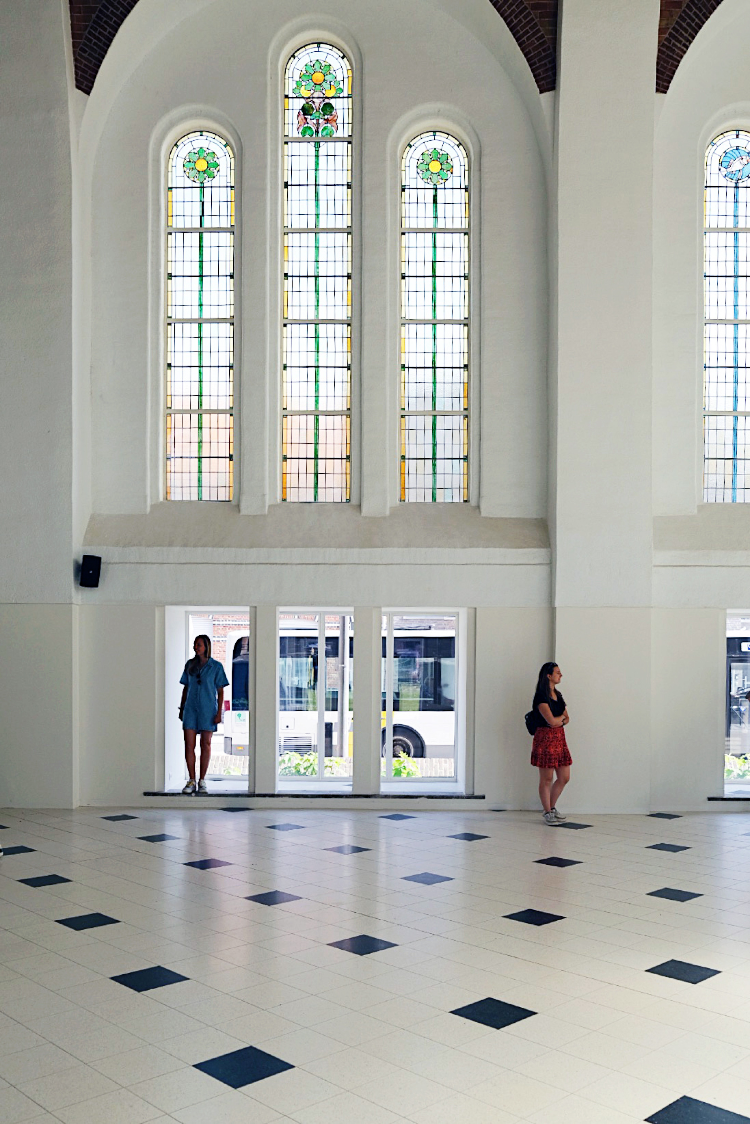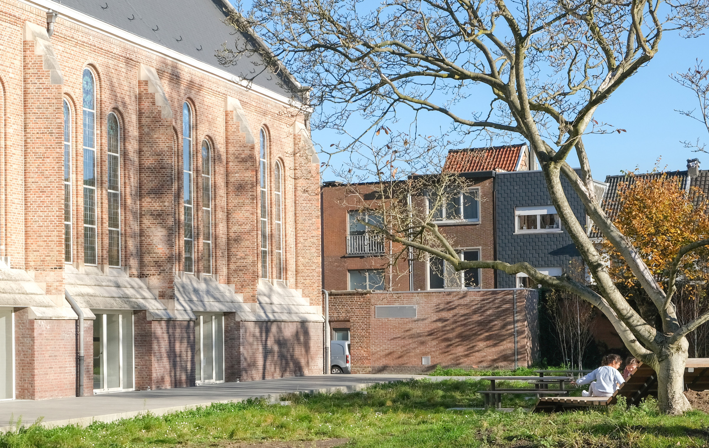 Het ontwerp voor de kerk vertrekt vanuit optimaal behoud van waardevolle elementen en karakter. Door het toevoegen van een losstaande box in de kerk – die de ruimtes organiseert en vormt zonder de zijmuren of plafond van de bestaande kerk te raken – kan het monumentale karakter van de Paterskerk behouden blijven. Nieuwe toevoegingen gebeuren met respect voor het gebouw, maar pretenderen niet ‘oorspronkelijk’ te zijn. De oude toegangen tot het gebouw blijven ongewijzigd en vanwege hun waardevol karakter integraal bewaard.