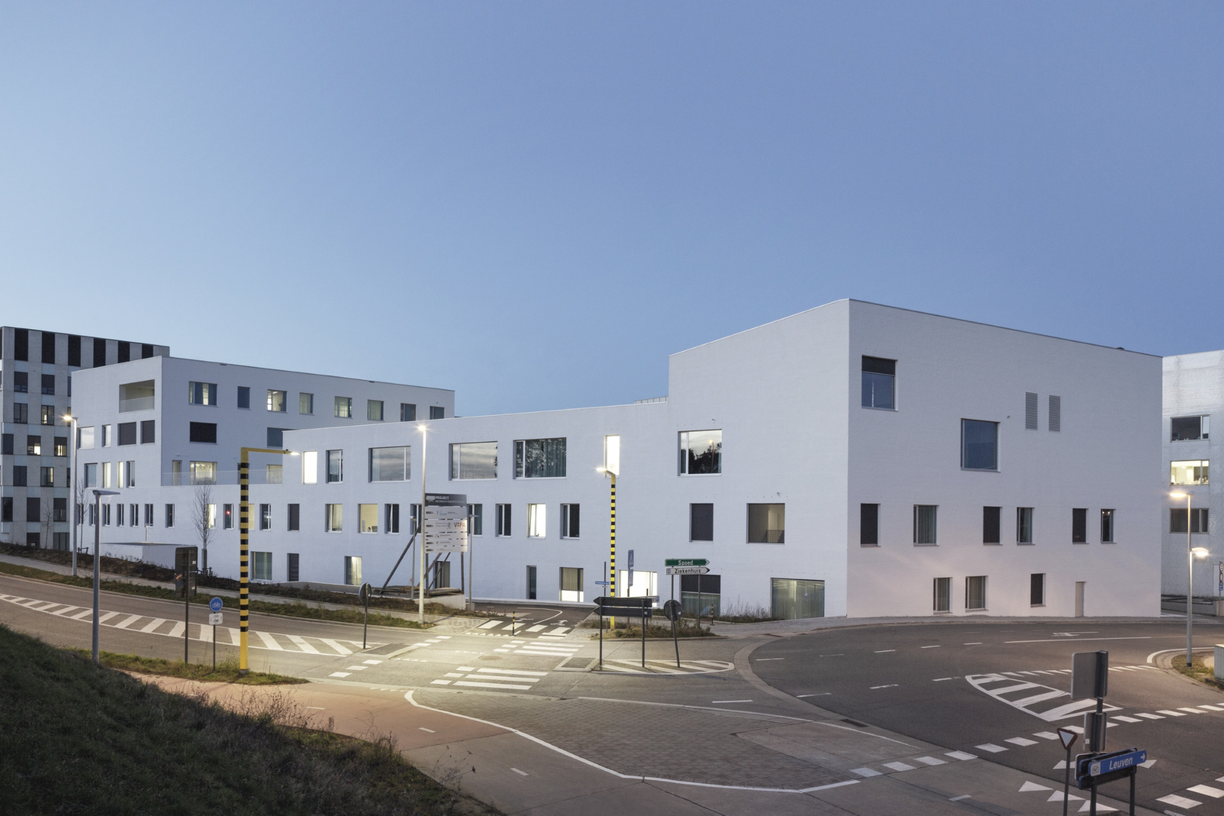 Het nieuwe kinderpsychiatrisch ziekenhuis op campus Gasthuisberg past binnen het masterplan van AWG Architecten, dat inzet op stedelijke densiteit en duurzaamheid. Het gebouw telt vijf bouwlagen, met een dynamische opbouw die zichtlijnen behoudt en een open karakter creëert.