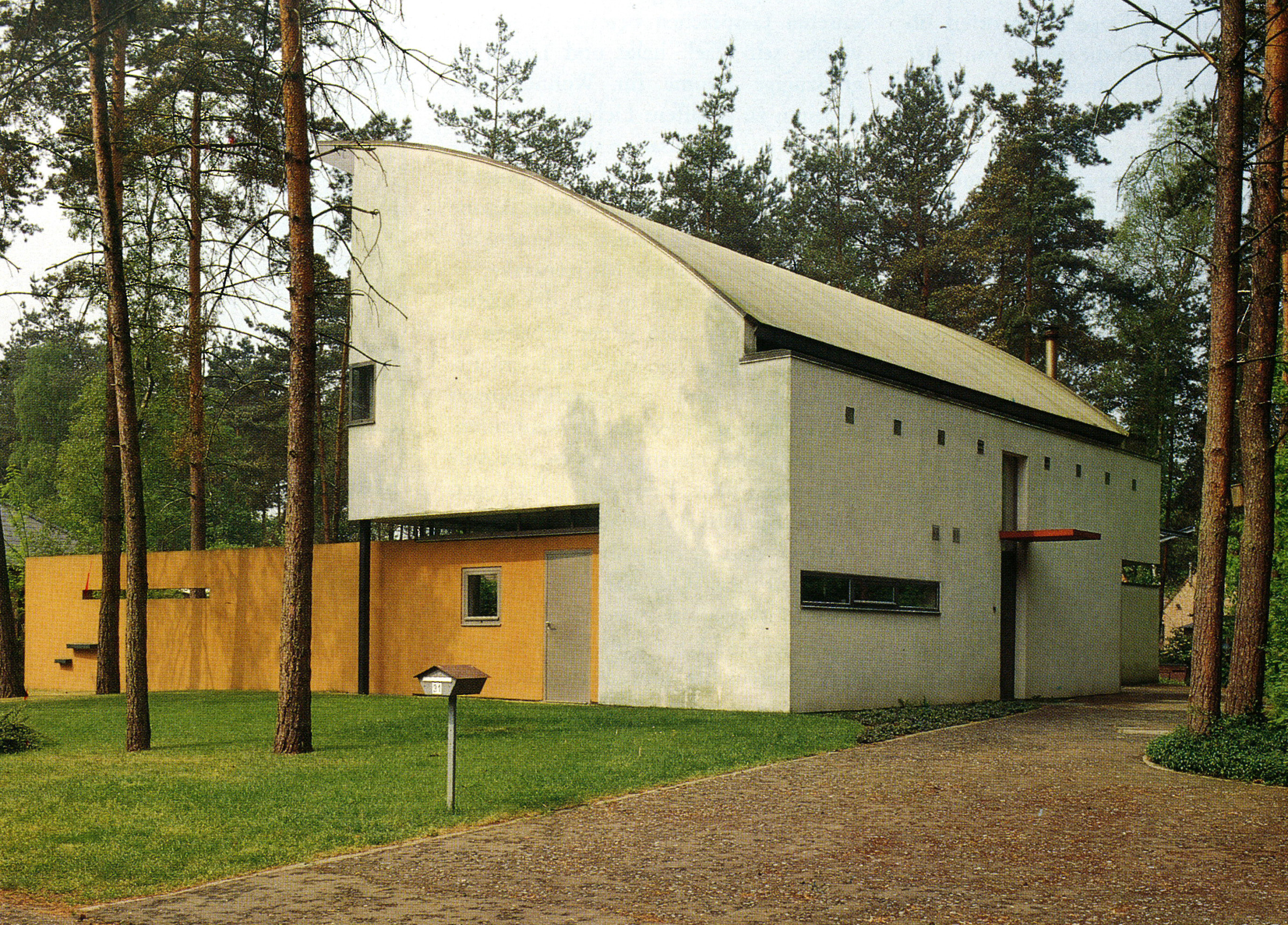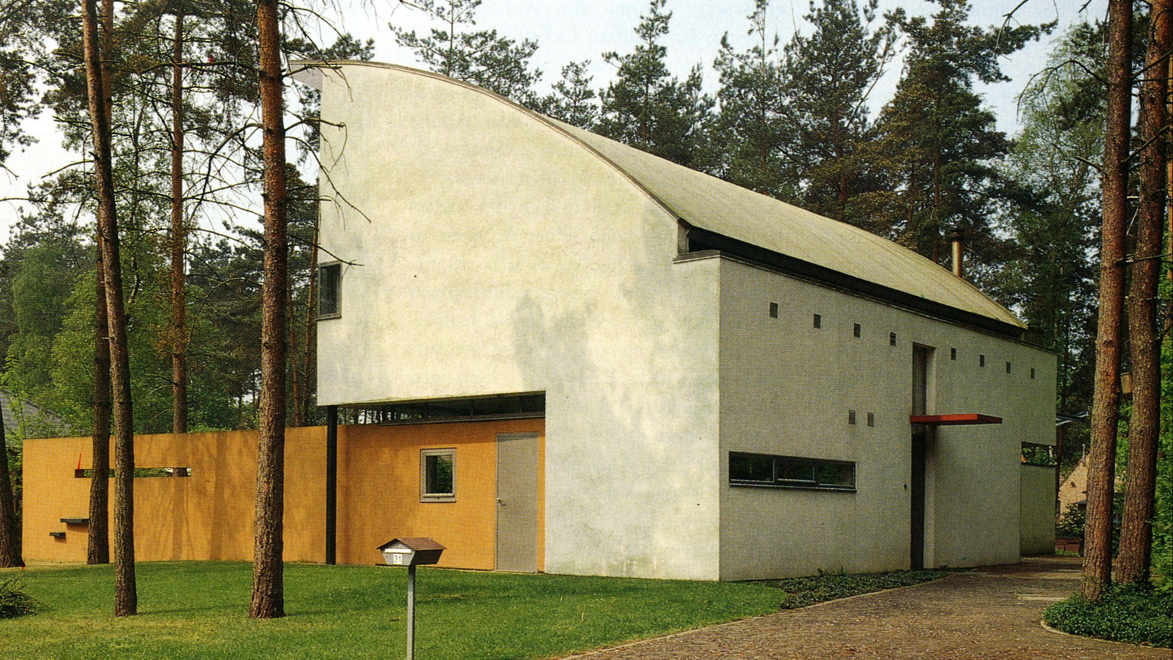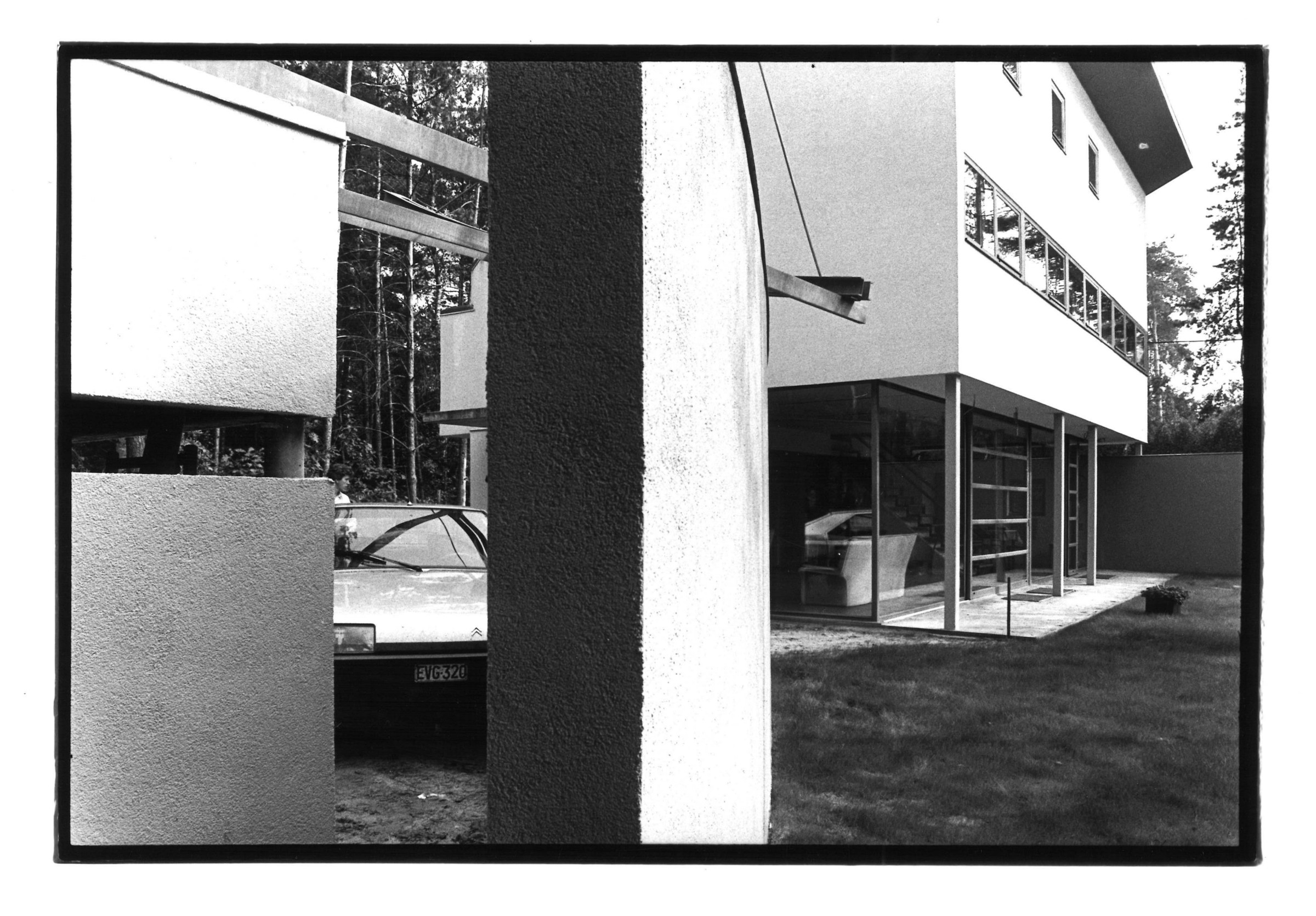 De woning als eiland in een verkaveld bos.